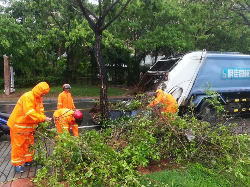 今年第9號臺風(fēng)“山神”的中心于今天凌晨4點50分前后,在海南萬寧市萬城鎮(zhèn)沿海登陸。受其影響,今天三亞、陵水有大到暴雨,將三亞、陵水街頭不少樹木刮倒,到處是殘枝敗葉,一片狼藉。臺風(fēng)中,為了確保市容環(huán)境的整潔、干凈,集團公司安排環(huán)衛(wèi)工人全員上崗,加緊清理街道路面,使城市迅速恢復(fù)潔凈。