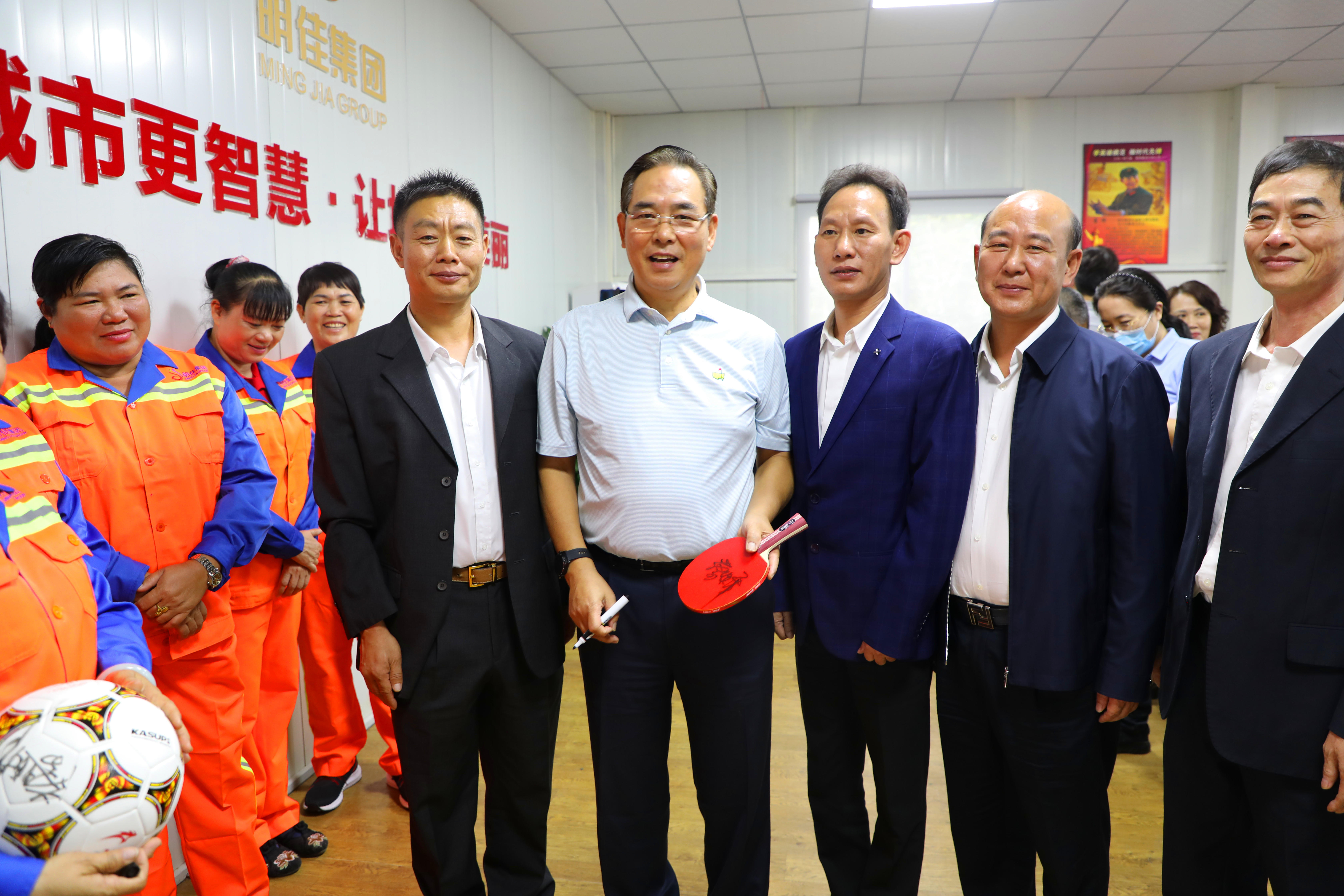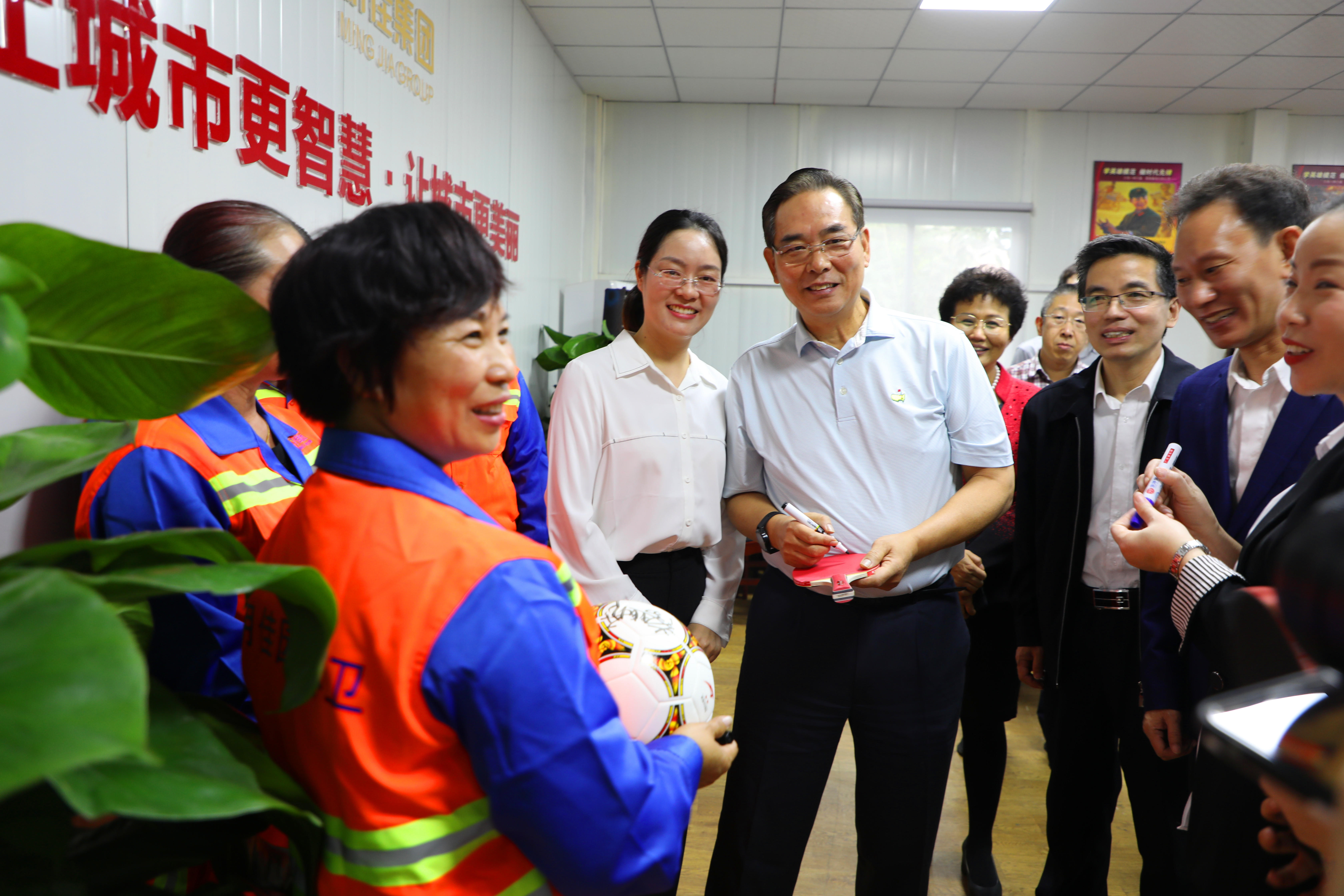 他肯定了明佳集團(tuán)工會(huì)取得的成績,并親切慰問了現(xiàn)場(chǎng)的環(huán)衛(wèi)工人,與他們一一握手,并合影留念。