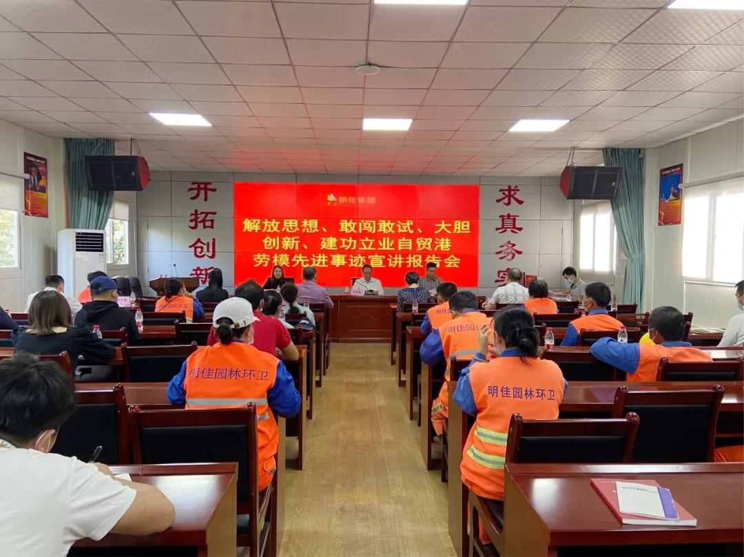 2月2日下午,市總工會在三亞明佳園林環(huán)衛(wèi)集團有限公司工會開展“解放思想、敢闖敢試、大膽創(chuàng)新,建功立業(yè)自貿(mào)港”勞模先進事跡宣講報告會。市總工會三級調(diào)研員王榮雅、明佳集團副總裁羅京軒、明佳集團工會主席高斐斐出席宣講會。三亞明佳園林環(huán)衛(wèi)集團有限公司職工50人聆聽宣講。