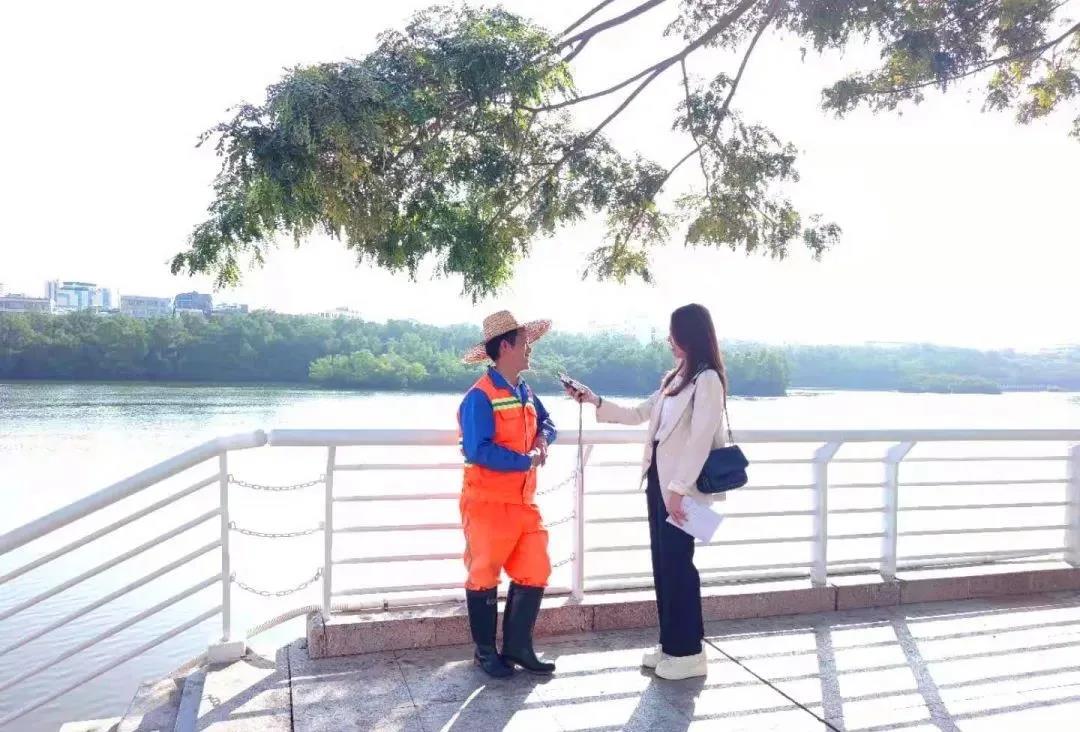 每天工作都是從早上7點鐘到下午的6點半,我們是分段來的。主要是坐船去收集河上的一些垃圾,一天巡邏清掃一次,清掃完了回來再巡邏保潔。水面和紅樹林里的垃圾都要清理。下雨天我們也要出來(工作),臺風天就要做好防風的工作,如果是下雨,我們一樣要出來打撈垃圾。