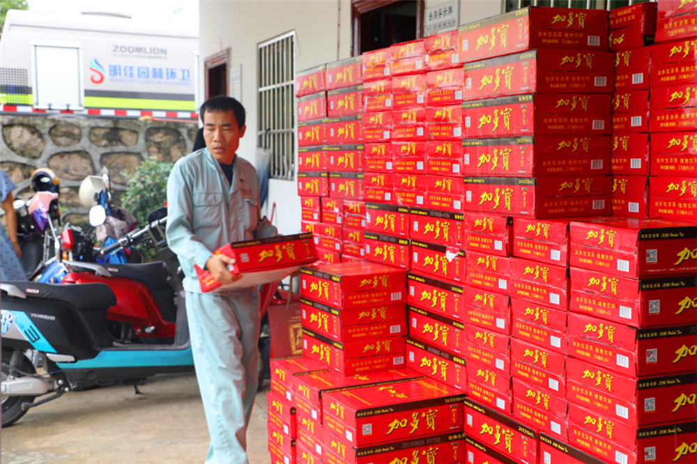 (吉陽區(qū)梁茂松主管向員工發(fā)放慰問品)