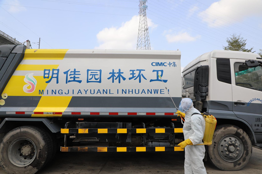 該公司全力做好垃圾清運、處理及垃圾轉(zhuǎn)運站、垃圾收集箱(桶)、垃圾清運車等環(huán)衛(wèi)設(shè)施設(shè)備的消毒工作。